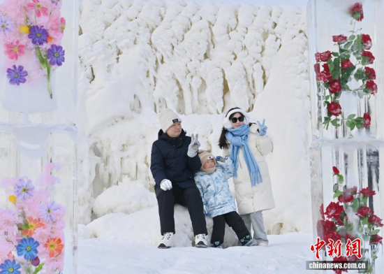 吉林長春:冰雪玫瑰相映成畫引游客參觀