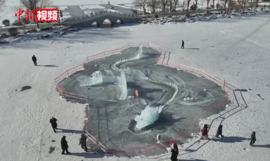 吉林長春:“龍鳳呈祥”巨型冰雕吸引市民