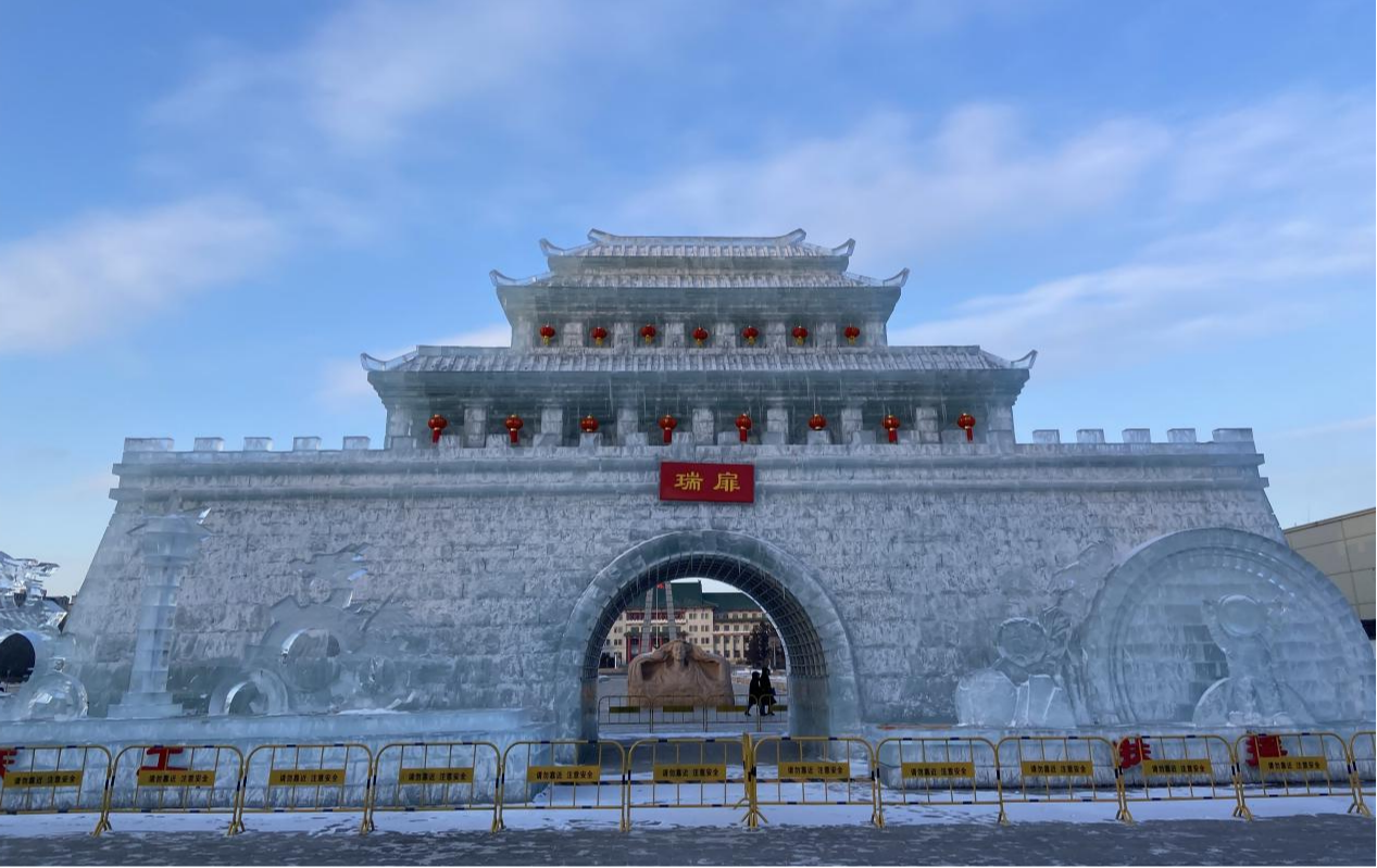 當(dāng)來自深圳的大學(xué)生張濤宇走出地鐵站來到長春市文化廣場,就被眼前恢弘的“瑞扉之門”所震撼,他摘下冒著熱氣的手套,輕輕觸摸冰面,感受這座陌生城市豐富的歷史文化底蘊(yùn)。