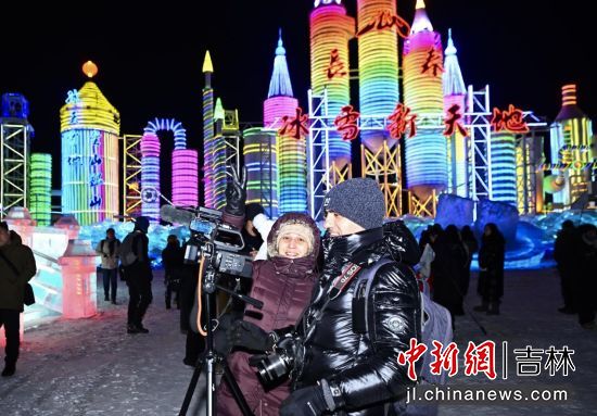 中國(guó)各地知名地標(biāo)建筑冰雕雄偉壯觀,絢麗多彩,吸引采風(fēng)團(tuán)一行用手機(jī)、相機(jī)、攝像機(jī)記錄下美麗的景觀!霸谖业墓枢l(xiāng)沒有冰雪,看到這些用冰雪建成的雕塑非常震撼,我會(huì)把錄制的視頻展示給更多家鄉(xiāng)的觀眾!眮碜岳劳ㄓ嵣绲挠浾哒f。
