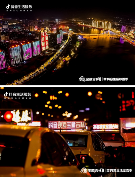 借助短視頻的傳播,吉林震撼的冬季霧凇景觀被更多網(wǎng)友看到。進(jìn)入12月,抖音生活服務(wù)在吉林市阿什小霧凇島落地“登島趕大吉”活動(dòng),帶動(dòng)小霧凇島搜索量創(chuàng)冬季新高,吉林市抖音團(tuán)購(gòu)搜索量顯著增長(zhǎng)。系列活動(dòng)得到吉林市委市政府的大力支持。華燈初上,吉林市松花江畔的地標(biāo)樓體上燈光閃爍著“抖音搜索,寶藏吉林”字樣。全市穿梭街巷的數(shù)千輛出租車車頂燈箱,也在提醒本地市民及異地游客關(guān)注“發(fā)現(xiàn)寶藏吉林”活動(dòng)。