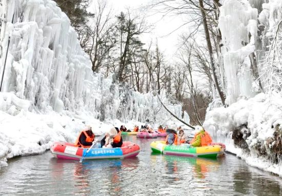 作為活動核心體驗內(nèi)容,礦泉水霧凇漂流系列項目極具吸引力。在核心體驗區(qū),游客穿著“冰漂衣”或乘坐特制漂浮墊,在長白山礦泉水中順流而下,感受“冰封世界”的極致寧靜。針對不同游客的需求,活動精心設(shè)計了“日出限定·秘境漂流”與“魔界晨霧·探秘漂流”兩大主題線路:前者以長白山日出為背景,搭配自然音樂營造浪漫氛圍;后者則以“霧中尋蹤”為主題設(shè)置互動任務(wù),讓游客在霧凇仙境中感受探險樂趣。