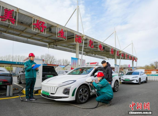 一新能源汽車在長(zhǎng)春市蔚山路充換電站充電。(資料圖)(國(guó)網(wǎng)吉林省電力有限公司供圖)
