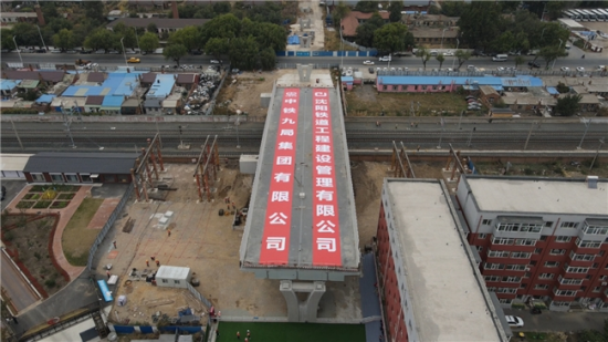 10月11日,由中鐵九局一公司承建的公主嶺市解放路公鐵立交橋40+40米鋼箱梁轉體施工順利完成。