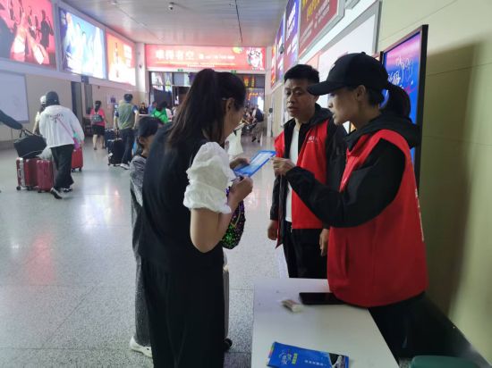 化身“福利官”,入延來(lái)敦有好禮。為確保能服務(wù)到每一位有需求的旅客,敦化高鐵站志愿服務(wù)窗口實(shí)行14小時(shí)三班輪值制度,每班3人,每日共9人在崗,設(shè)置宣傳展板、領(lǐng)取指南和咨詢服務(wù)點(diǎn),保證在列車運(yùn)營(yíng)及游客出行時(shí)間段實(shí)現(xiàn)服務(wù)全覆蓋。按照發(fā)放政策,符合條件的人員可通過(guò)“線上+線下”的方式申領(lǐng)紅包或零錢包獎(jiǎng)勵(lì),志愿者們身著紅馬甲,在列車抵達(dá)時(shí)于出站口準(zhǔn)時(shí)就位,主動(dòng)為旅客現(xiàn)場(chǎng)講解“迎客紅包”的申領(lǐng)政策、操作流程,并協(xié)助完成申報(bào)。與此同時(shí),團(tuán)市委微信公眾號(hào)同步發(fā)布相關(guān)宣傳資訊,提升政策知曉率,讓旅客感受到滿滿誠(chéng)意。