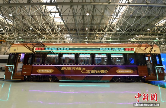 10月16日,中國首列氫能文旅列車“氫春號”在吉林長春正式下線。該列車由中車長春軌道客車股份有限公司研制,采用氫能動力系統(tǒng),無需接觸網(wǎng)供電,運行時的唯一產(chǎn)物是水,真正實現(xiàn)了零碳排放。列車支持1至6節(jié)的靈活編組,能夠滿足城市通勤與文化旅游等多元化線路需求!皻浯禾枴钡牧料啵馕吨鴼淠茉谲壍澜煌▓鼍跋碌纳虡I(yè)化從實驗室走向應(yīng)用。中新社記者 張瑤 攝