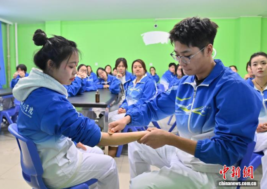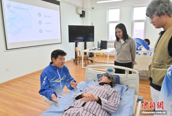 12月15日,在長春人文學院,學生在實操介護技術(shù)。面對老齡化進程與銀發(fā)經(jīng)濟發(fā)展,該校開設了養(yǎng)老服務管理專業(yè),融合管理學、心理學、護理學等,設置介護福祉綜合實訓、老年康樂活動策劃與實施綜合實訓、智慧養(yǎng)老實務等近30門課程,培養(yǎng)既懂運營管理又具備實操技能的復合型人才,吸引年輕人投身這一“朝陽產(chǎn)業(yè)”。中新社記者 張瑤 攝
