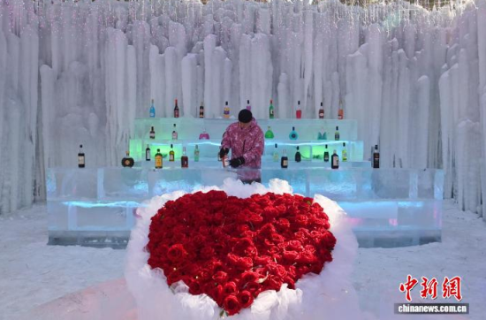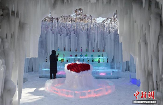 2月3日,位于長春冰川幻境冰雪樂園內(nèi)的一座由冰瀑打造而成的特色“酒吧”,吸引了大量游客前來打卡體驗(yàn)。酒吧內(nèi)部以冰雪為主題,晶瑩剔透的冰沙發(fā)與冰吧臺(tái)相互映襯,營造出夢(mèng)幻般的冰雪世界氛圍。中新社記者 張瑤 攝