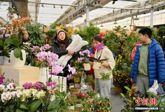 2月9日,吉林長(zhǎng)春,商家在修剪鮮花。春節(jié)臨近,長(zhǎng)春市各大花卉市場(chǎng)迎來(lái)年宵花銷售熱潮。蝴蝶蘭、大花蕙蘭、杜鵑花等象征喜慶的鮮花琳瑯滿目,吸引眾多市民前來(lái)選購(gòu);ㄉ虃兠β祩湄洝⒋虬,現(xiàn)場(chǎng)一片繁忙景象。中新社記者 張瑤 攝
