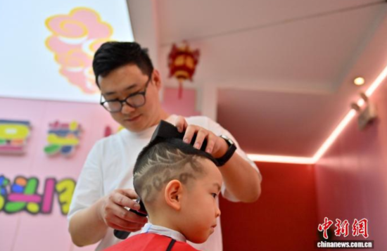 2月13日,吉林長春,小朋友在剪發(fā)。馬年春節(jié)臨近,不少家長帶著孩子剪發(fā),理發(fā)師也為孩子們特別設(shè)計(jì)了各式有趣的造型。中新社記者 張瑤 攝